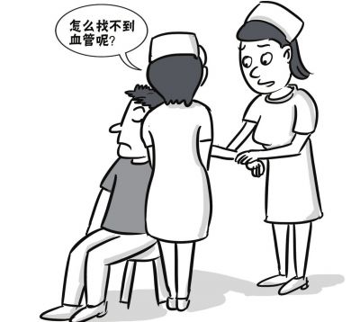 这种情况可选择小针头,而且做好穿刺前的准备工作,可用热敷方法使血管充盈、扩张,以利穿刺。