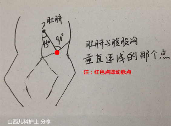 6、面对股动脉搏动不明显患儿,准确定位股动脉的小技巧: