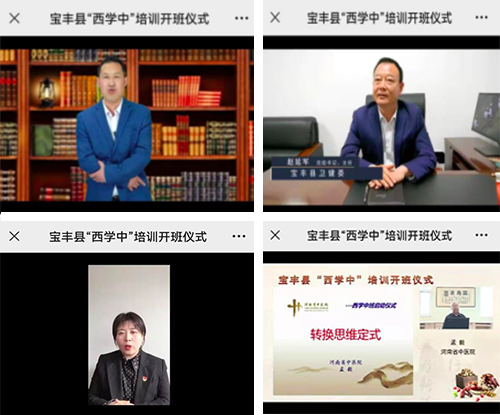 3月29日下午,华医网协办的宝丰县“西学中”开班仪式如期举行。 结合疫情防控态势和宝丰县“西学中”工作要求,此次培训班采用线上直播形式开展,华医网提供技术支持。参培学员通过“掌上华医APP”西学中培训进入直播间观看。 河南省卫健委中医处副处长徐宏伟、平顶山市中医管理局局长李佩、宝丰县卫健委党组书记、主任赵延军、宝丰县中医院相关负责同志,以及120名西学中学员和其他中医药爱好者参加了本次线上开班仪式。