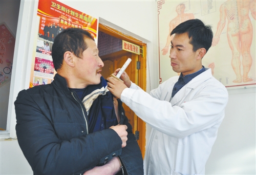 “年轻的时候光着膀子骑摩托车受了风,落下肩周炎的病根。以前疼了就去卫生院开点止疼药,一次30元,药一停就又疼了。”老梁是甘肃庄浪县韩店镇石桥村的农民,2016年8月,他开始在村卫生室找村医朱茂义做针灸治疗,“中医效果慢,只要长期坚持做,慢慢就好了。做一次治疗10块钱,能全部报销”。