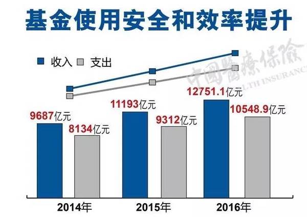 截至2016年10月底,医保智能监控已覆盖13个省份的所有统筹地区。2016年城镇基本医保基金收入12751.1亿元,比2015年增长13.9%;支出10548.9亿元,比2015年增长13.3%。自2015年开始,基金支出增幅大于收入增幅的趋势得到扭转。