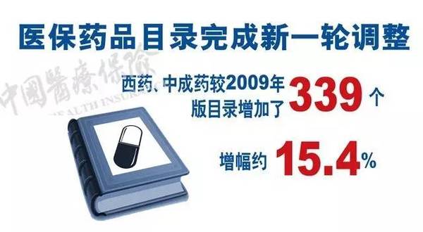 目录共收载西药和中成药2535个,较2009年版目录增加了339个,增幅约15.4%,为满足参保人员用药需求、减轻负担提供了保障。