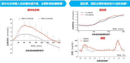 图2. 三大宏量营养素对餐后血糖的影响存在差异15-18