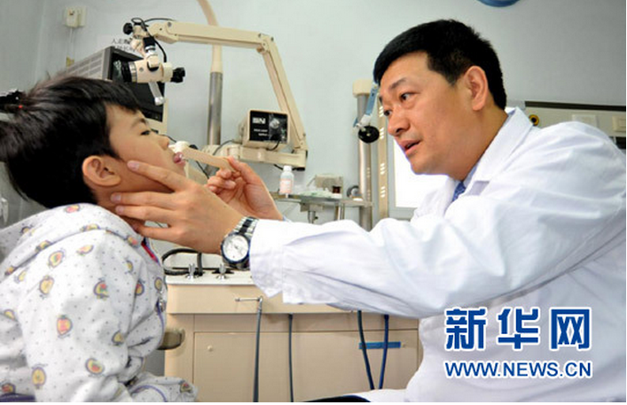 首都医科大学附属儿童医院院长倪鑫在门诊给患儿做检查。 (资料图片)